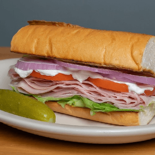 Savory ham, crisp lettuce, ripe tomatoes, and creamy house-made mayo layered on a toasted hoagie roll, served hot or cold. A signature classic that’s fresh, flavorful, and satisfying any way you like it.