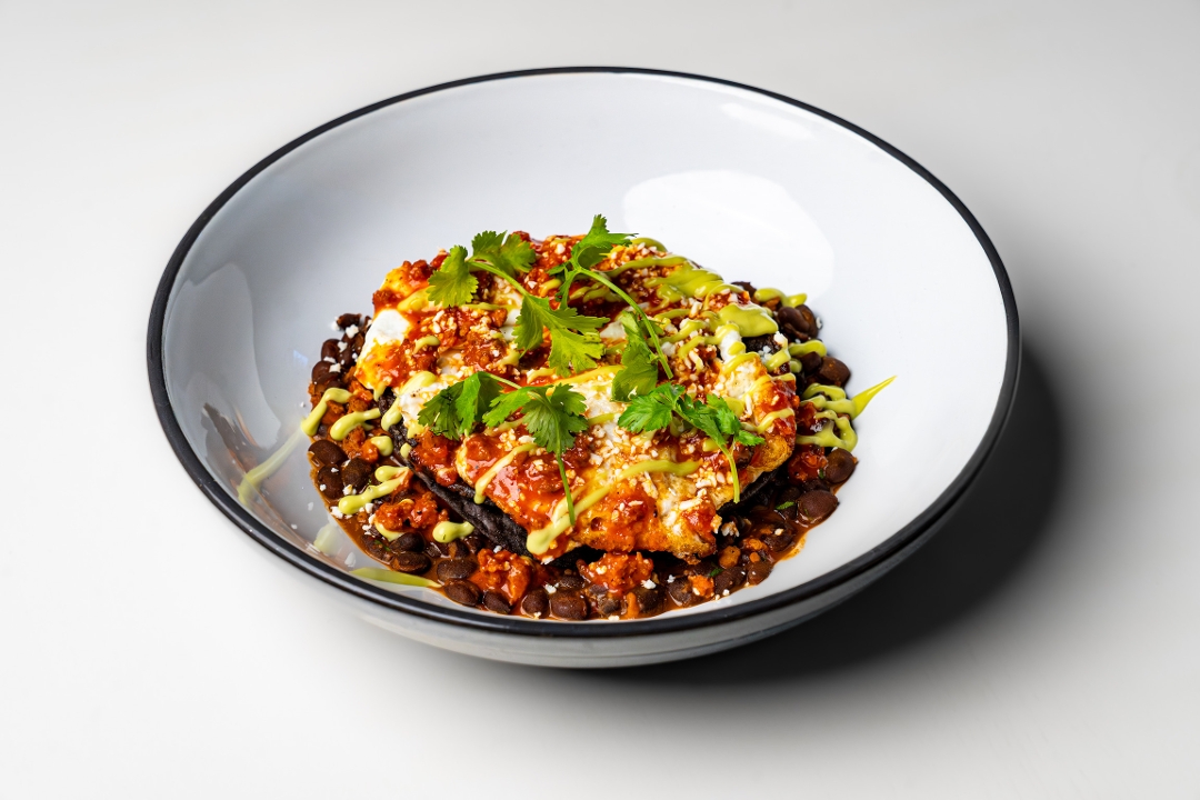 Fried Egg, Black Beans, Chorizo Salsa, Fried Tortilla, Cotija Cheese, Avocado Lime Ranch