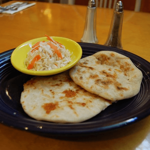 Queso, chicharrón, revuletas, frijole con queso, jalapeño con queso, pollo con queso, ayote con queso, Vegan Cheese. The most typical Salvadoran dish, consisting of a corn flour tortilla stuffed with your choice of cheese, pork, both, bean and cheese, jalapeño and cheese, zucchini with cheese or chicken and cheese. Served with our homemade pickled shredded cabbage and carrots. (Sold Individually)