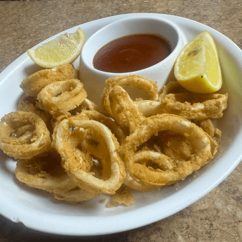 Tender pieces of calamari lightly battered and fried to perfection. Served with salsa roja and a lemon, wedge