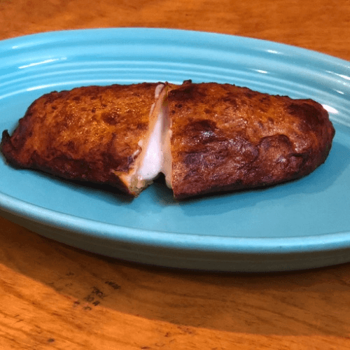 A tamale made with corn meal, spices, potatoes, and succulent portions of chicken breast, wrapped and steamed