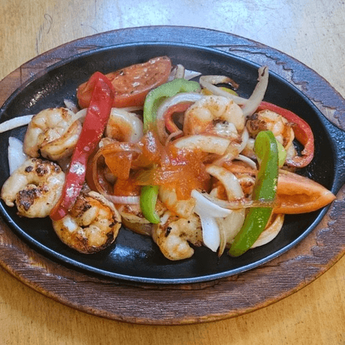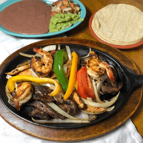 Our special fajitas of marinated steak, shrimp, and chicken. Served sizzling with grilled tomatoes, onions, bell peppers