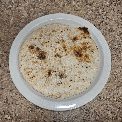 Our extra large super supreme pupusa. Filled with pork, cheese, refried beans, onion, bell peppers, loroco and jalapeño. Una gigante pupusa rellena de chicharrón, queso, frijole, cebolla, chile verde, loroco y jalapeño