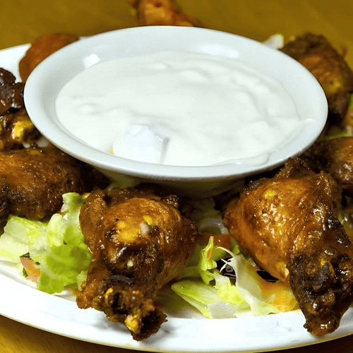 Large and tender chicken wings, golden fried, and drenched with our spicy hot sauce. Served on a bed of lettuce with pico de gallo and blue cheese dip