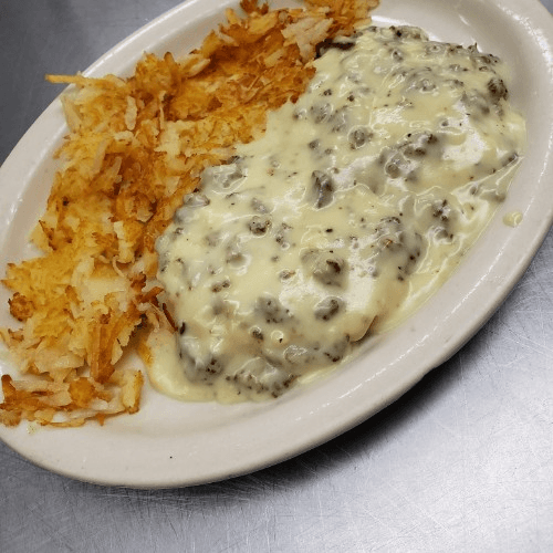 Nancy's Special Recipe Fresh baked and topped with beef gravy, served with mashed potatoes, gravy.