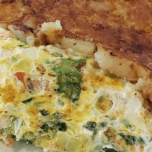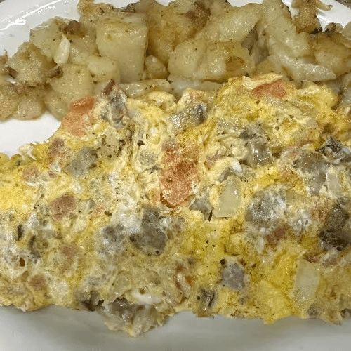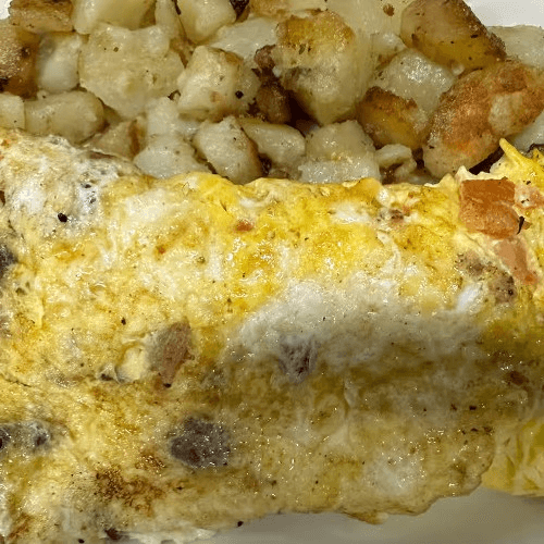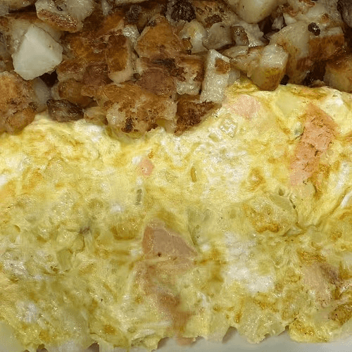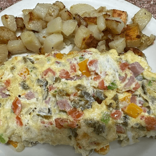 Filled with ham, red and green peppers, onions and jalapeno peppers