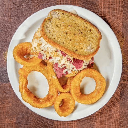 Sliced corned beef, Swiss cheese, sauerkraut and 1000 dressing